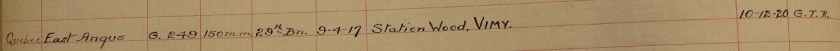 On the southern boundary of the wood, four “5.9s” (15cm howitzers) and another nearby battery of “Whiz-bangs” (77mm field guns) opened up on the advancing units. In short order the guns knocked out the British tanks. “D” company, led by Capt. J.D. Verner, M.C., managed to advance along a cut in the road, and brought the battery under accurate enfilading fire, with the gun crews promptly surrendering and the guns captured intact. The Battalion rested in Vignette Wood as the 7th Battalion came up and continued the advance.