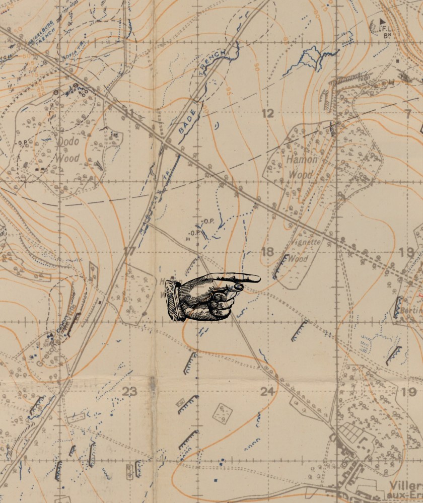 At 07:30 “D” Company pushed on over open ground towards Vignette Wood, with a major objective being the elimination of a battery of guns that were known to be sited there.