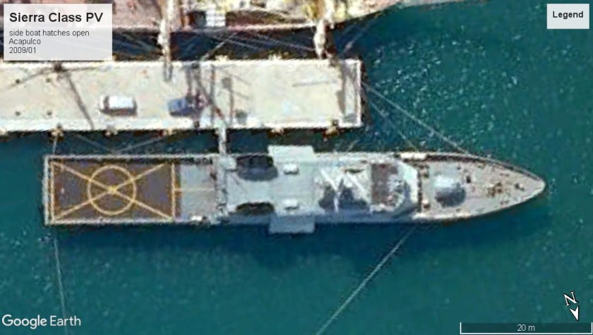 It isn’t all USN cast-offs though: The ARM Reformador POLA-101, a frigate-sized SIGMA design and some of the new corvette-sized vessels, including the Durango and Sierra class patrol ships or “gun boats” have reduced-radar cross-section design, a flight deck and hangar, and a variety of stern and side hatches that deploy the ship’s interceptor boats.