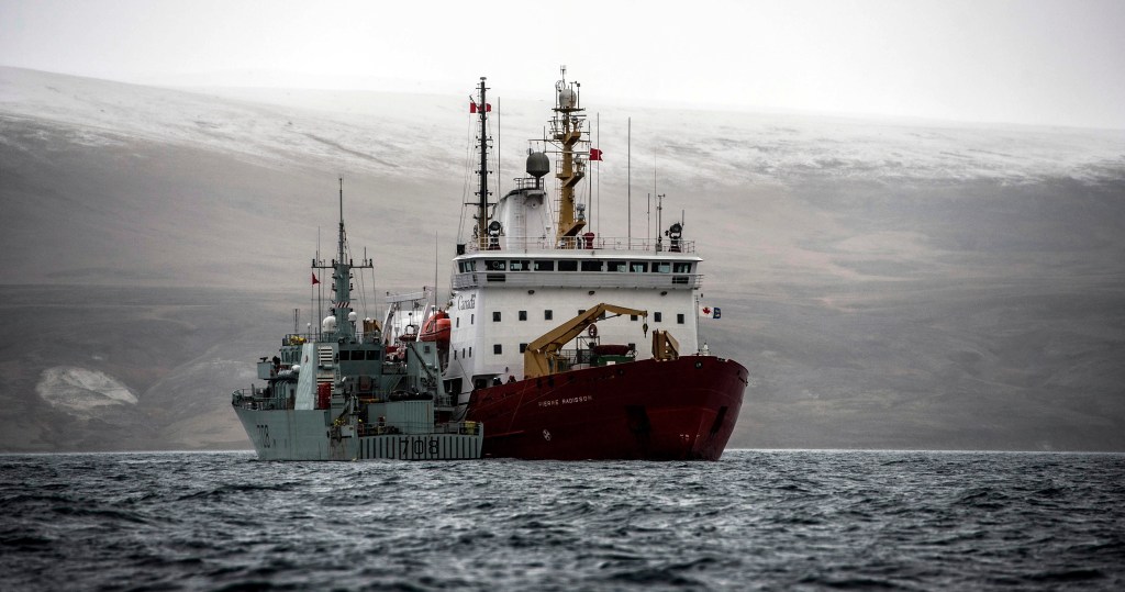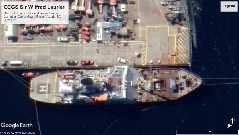 CCGS Sir Wilfred Laurier (1986) LOA 262’ / 83M TDISP 4,600 tons Arctic Class 2 Light Icebreaker and tender. This ship is a veteran of previous Franklin Expedition search efforts and Parks Canada archaeology efforts. During the 2019 season, Laurier contributed anchors to help tether the barge Qiniqtiryuaq above Erebus. Based on recent marine traffic information (2022/09/20), and the onset of colder weather off King William Island, we believe the Laurier is helping to conclude the dive season. CCGS Pierre Radisson has moved on to Hudson’s Bay. Laurier’s last positions showed it stationary near Ambush Rock after having moved westward from Gjoa Haven through the Simpson Strait and Storis Passage, towards the vicinity of the Erebus site. The ship appears to be accompanied by an 8m, 15 ton light Coast Guard Boat which may be ferrying supplies back from the actual wreck site to the Laurier.