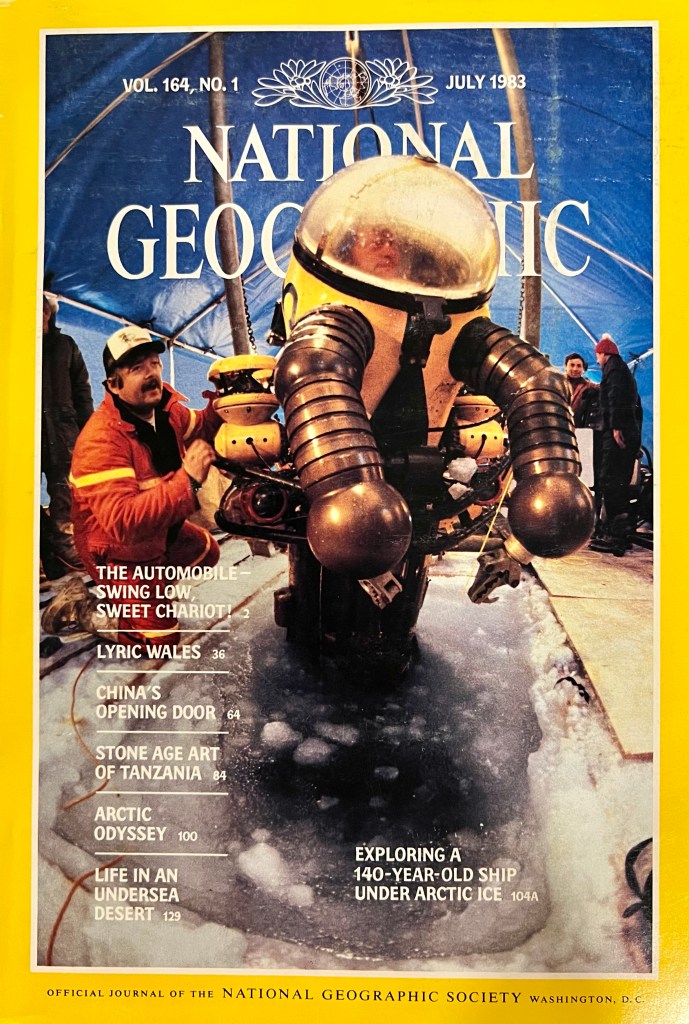 This might all seem standard procedure in the third decade of the 21st Century. Similar dives have now been performed on other Franklin Expedition-associated sites, and an ice camp was also an option in the recent find of Sir Ernest Shackleton’s exploration ship Endurance under the Weddell Sea, Antarctica; however, in 1983 this was pushing the limits of technology. Looking back at the concurrent RPV filming and diving, and the as-it-happens filming of a National Film Board documentary, directed by Bill Mason, the logistical and technological efforts in an environment of -20*C, and the “cowboy” atmosphere at the ice camp…the whole effort was bonkers!3 Somehow, the program stayed on track, and things came together just when they had to. The dives were an incredible success. WASP pilots Phil Nuytten (a Canadian engineer heavily involved in the design of the suits) and Doug Osborne have been the only humans to ever visit the site. Nuytten was quoted as saying ”It looked like you could sail it away, if you could somehow make the water vanish, you could probably repair it in a couple of weeks and sail it back to England. It looked great.”4