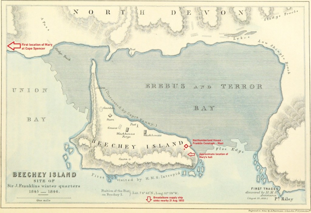 The state of preservation should not have been so surprising: remains and relics of Arctic exploration located at Beechey just don’t seem to deteriorate as we would expect! A few years earlier the wreck of the supply ship Breadalbane had been discovered nearby. Like Torrington and the shipmates buried alongside him, Breadalbane was also “Frozen in Time.”1
