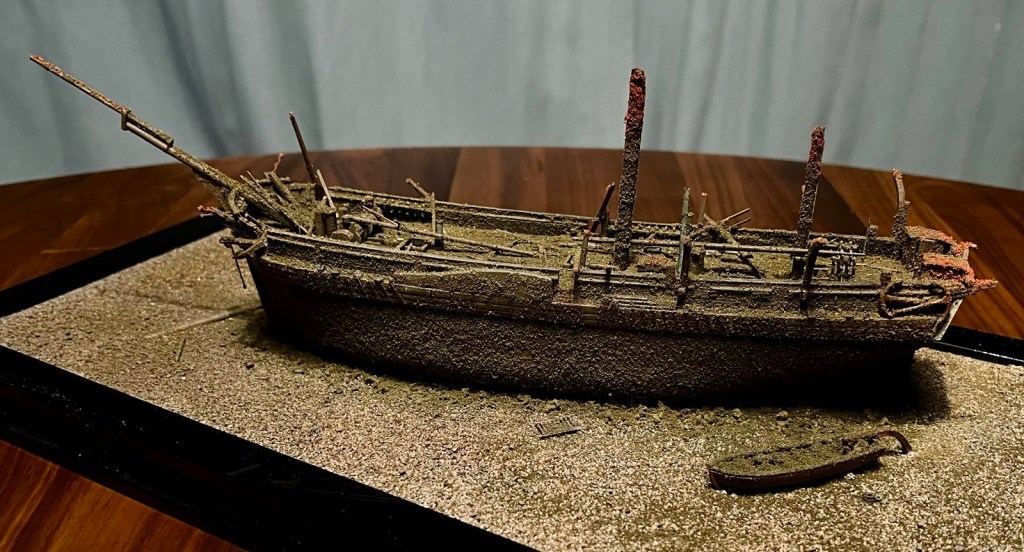An earlier post “Wrecking the Terror: Recreating an Epic Tale of Old Loss and New Discovery” summarized what we know about the actual wreck of HMS Terror located in Terror Bay, Nunavut, and my 2022 project to build a small diorama of the wreck site. Terror, an astonishingly well-preserved time capsule of the last Franklin Expedition, continues to captivate Franklin scholars and enthusiasts, archaeologists, naval historians, ship lovers, and the expanding fandom community who continue to enjoy the fictionalized drama of AMC’s “The Terror”(season 1).