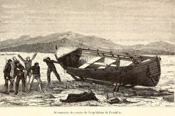 The distinctive stem of the boat was sketched by McClintock. This was recovered two decades later by American Franklin searcher Frederick Schwatka, who, while looking for records, was leading the first expedition on King William Island that encountered the sites in the summer, not under cover of snow and ice.