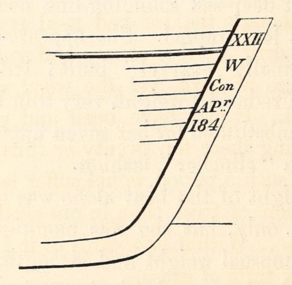 As mentioned above, the stem of this boat is particularly note-worthy (AAA2282), and even features the remains of markings. Royal Navy boats had a type of data stamp on the outer surfaces of the upper stem, which identified the length of the boat, expressed in feet, using roman numerals (and other details such as the place of construction, contract or boat number, and the month and year the boat was built). This stem had been planed down, to further lighten the boat for the 1848 overland journey. This effectively removed the last letters or digits. McClintock drew the markings for the first publication of his narrative, and then updated this for a later addition with different markings. The best photo I have encountered of this was taken by Logan Zachary during his 2018 visit to the “Death in the Ice” exhibit at Mystic Seaport and posted to his website. Taken together, it is an inconclusive series of markings with lengths reported for the original boat between twenty-two and twenty-eight feet long! My research and reconstruction of the boat is ongoing, so please look out for the update.
