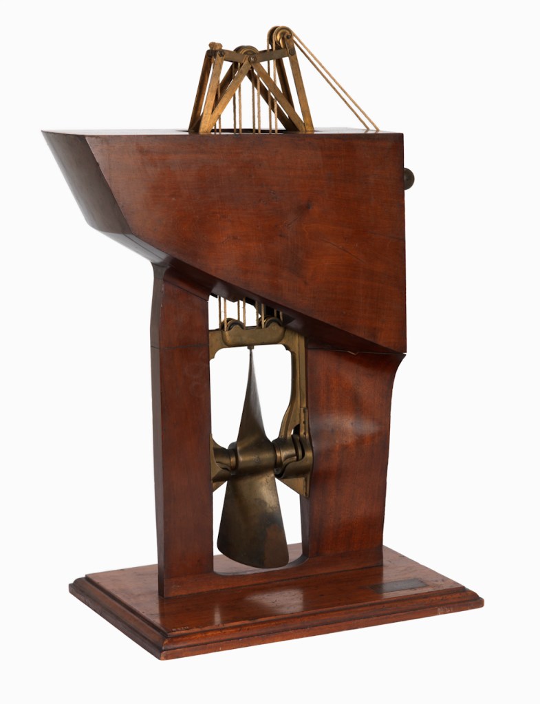 - See Lang’s design model for the stern of the Agamemnon (1852) at the National Maritime Museum- SLR2225). Remarkably, France had commissioned Le Napoléon, the first purpose-built steam battleship in the World, before either Agamemnon, the similar James Watt, or even the converted Sans Pareil were complete. There had also been a small number of modified screw-propelled guardships, which were cut-down two-deckers of the Vengeur class. These modifications, starting in 1846 with HMS Blenheim, produced down-rated vessels too small to remain in the traditional line of battle. See a very interesting model (1891-141) in the Science Museum Group’s collection for a look at Blenheim’s screw design. Le Napoléon was designed by Henri Dupuy de Lôme, who had studied steam-powered screw propulsion in England in the early 1840s and would go on to design the first iron-clad warship, Gloire. ↩︎