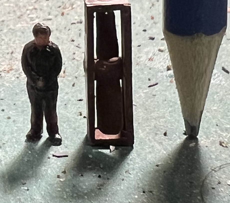 When planning my miniature interpretation of the wreck site in early 2022 – more than five years after the discovery of the Terror – I believed that the propeller was not installed. I thought it could have either been raised into its protective trunk at the stern of Captain Francis Crozier’s cabin, or that it would eventually be located somewhere nearby. A sketch I worked up of the Terror site, made concurrently with the model, illustrated my overall understanding of this area. Over at Wilmot and Crampton Bay, at Erebus’s wreck site, one of these screws lies on the seabed in the debris field.