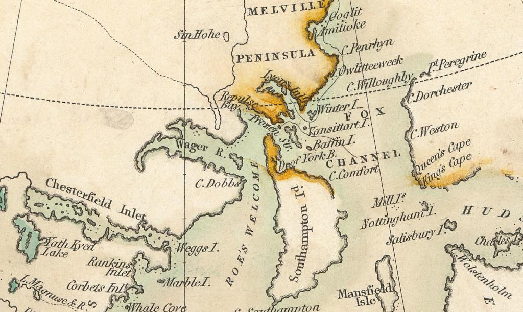 He briefly summarized the events of the Middleton Expedition. He gave particular attention to Dobbs’ charges. Barrow mentioned that the Admiralty was suspicious of Middleton’s motives, and repeated the accusation that he may have accepted an HBC bribe to omit some discoveries from his accounts. He also seemed to doubt that a Frozen Strait could be located to the east of Middleton’s Cape Hope.47