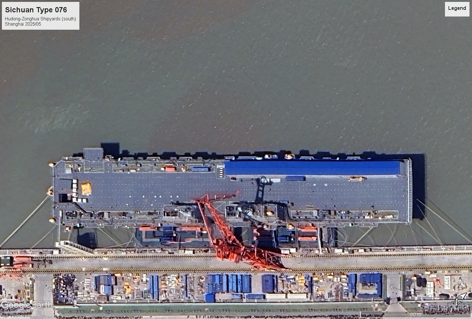 Type 076 (NATO “Yulan”) Class Landing Helicopter Dock (LHD) also carries UCAV LOA 850′ / 260m TDISP 50,000 (1 commissioning) Shanghai, Hudong-Zonghua shipbuilding.