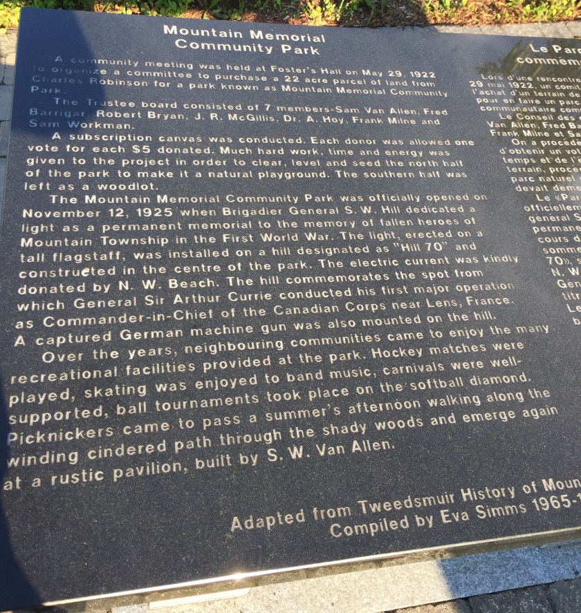 Mountain ON. Battle of Hill 70 Memorial site (author’s photo)