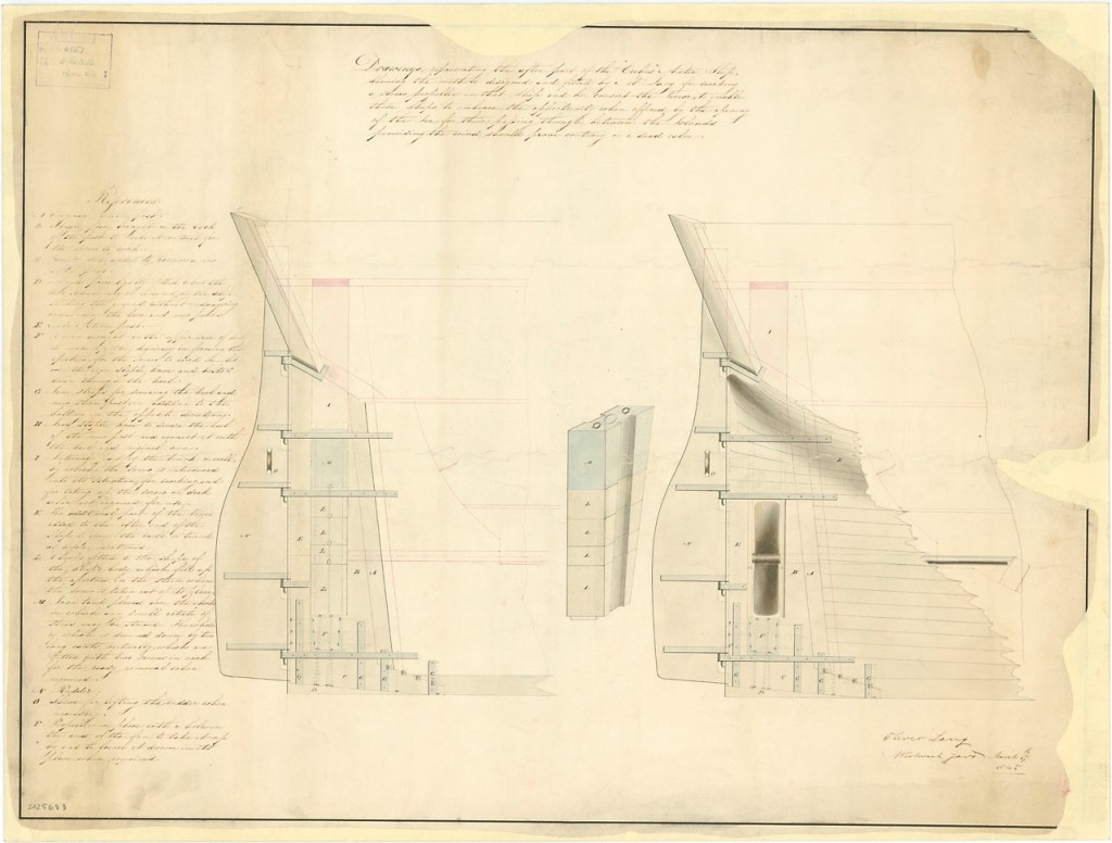 In early 2025 I set about transforming a tiny plastic model to represent the boat and sledge that searchers looking for the lost Sir John Franklin 1845 Expedition came across in 1859 on the western coast of King William Island.1 My research is summarized in the “design dossier” section of my recent post on this discovery. Stages of my build resembled some of the real modifications ship carpenters would have worked at early in 1848, as they prepared to desert HM Ships Erebus and Terror – I sawed off the old square transom (visible in the below photo) and reshaped a sharp or rounded stern using Milliput putty around a balsa wood carved-out form (later removed), and built a new curved sternpost. I added two gudgeons, on the chance that the boat could have been fitted with a rudder. As of this writing, I believe the converted boat was based on the hull of the lighter 25’ Cutter instead of the Pinnace (see below boat dimensions section for detailed information).