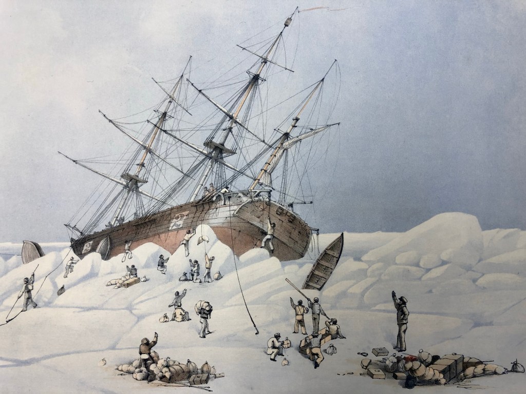 This simple two-bladed screw is one of the most important artifacts existing at either Franklin shipwreck site. The Commemorative Integrity Statement relating to this National Historic Site of Canada specifically identifies the marine screw propulsion as a character-defining aspect of the sites, demonstrating the 1845 technological innovation of the Expedition.4 From the waterline up, both ships looked much like they had during J.C. Ross’s expedition to Antarctica (1839-1843). Erebus and Terror were also not the first ships with an auxiliary steam engine to go north: In 1829 Ross’s uncle, Sir John Ross, had taken Victory north with an experimental – and mostly useless – steam engine.5 However, the idea of fitting a removable screw propeller into a Discovery Service exploration vessel was truly original. The suggestion came from a superstar in polar exploration. As Dr. Matthew Betts relates in his book HMS Terror – The Design, Fitting and Voyages of the Polar Discovery Ship, the seasoned Arctic explorer Sir William E. Parry – who now had an official role in investigating the optimal methods of steam propulsion in the Royal Navy – believed that the new propulsion technology could give vessels operating in the Arctic Archipelago a big advantage: The ability to navigate tight passages free from any dependence on the vagaries of the winds.6 Having auxiliary steam propulsion available to the Expedition captains could help force a constricted passage, position the vessels to better meet the rigors of overwintering in ice (for example by allowing them to get to a safe harbour or a more sheltered section of coast), or get them clear of an immediate hazard, such as an errant iceberg or a perilous lee shore. Parry’s experience commanding similar vessels in the Arctic provided him with an invaluable perspective on how screw propulsion could support this new attempt to transit the Northwest Passage. The Admiralty endorsed Parry’s idea.