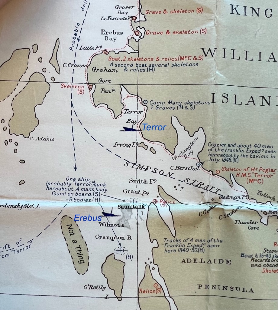 Early this year I was searching for information about the 2024 Parks Canada program of archaeology on the Sir John Franklin shipwrecks, HM Ships Erebus and Terror in Nunavut, Canada. Instead, I stumbled upon a new post “Anchors and Propellers” by Franklin Expedition scholar and veteran searcher David Woodman on his site: Aglooka.2 This update assembled interesting information about the ships’ complement of anchors, and also their propellers. Reading on, I encountered a previously unpublished image from the Parks Canada Underwater Archaeology Team (above). I was stopped dead in my wake! Here we see Terror’s screw propeller, installed in its aperture! With this photograph, we have the first visual confirmation that a marvelous piece of Victorian maritime technology has survived relatively intact after more than 175 years of immersion at Terror Bay.3